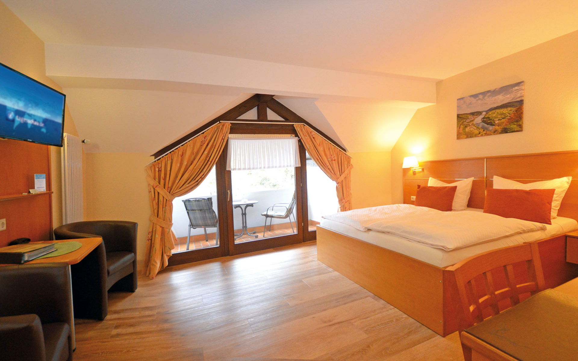 Doppelzimmer mit Dusche oder Bad/WC und Balkon inklusive großem Schlemmer-Frühstücksbuffet
